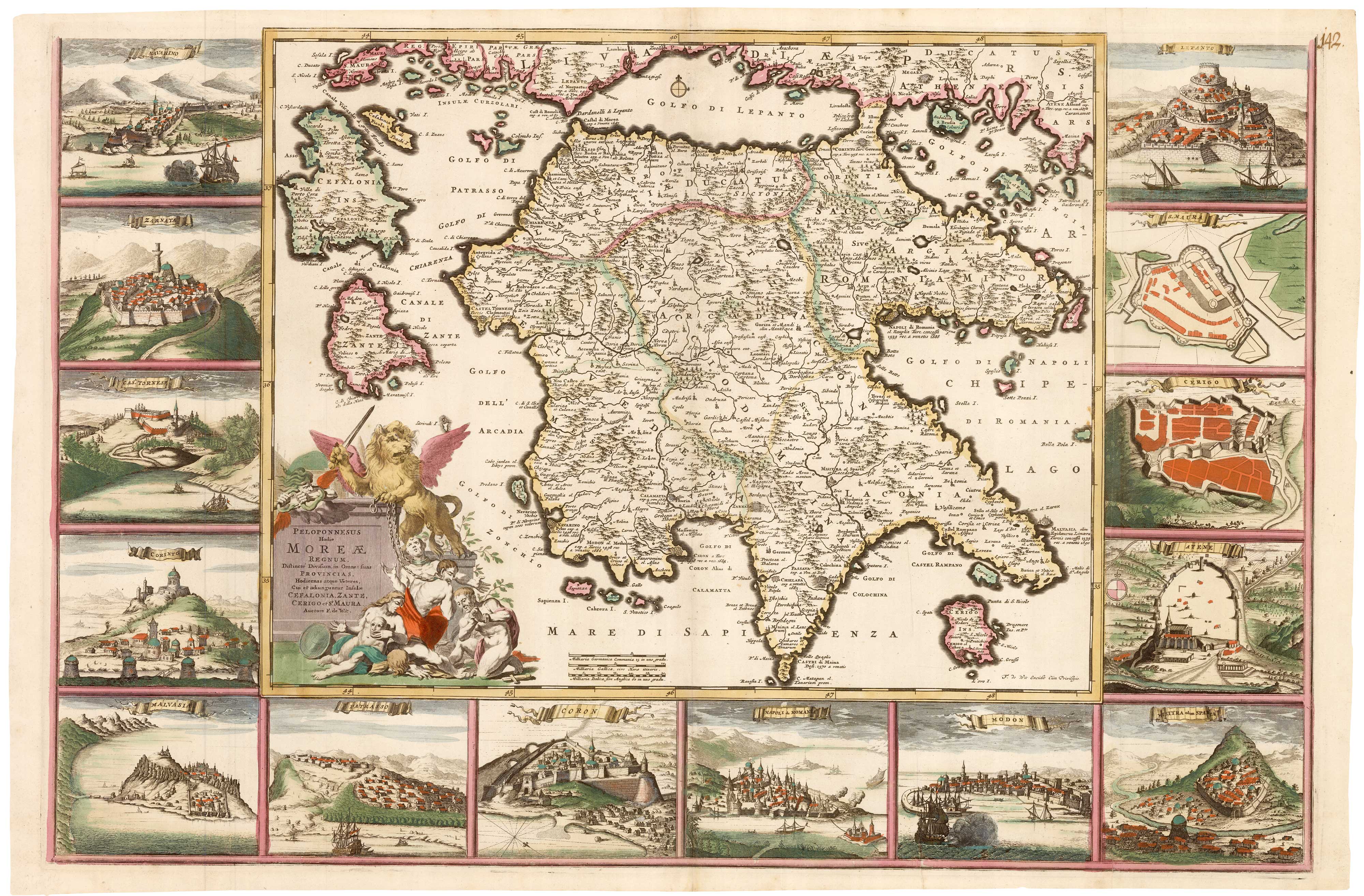 Map of the Peloponese and part of Greece and the Greek Isles