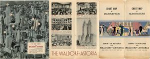 On the reverse is an arial photograph of New York's skyscrapers with the Waldoft highlighted, and shots of the hotel's interior.