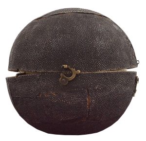 London, Strand J. & W. Cary, 1st April 1791. 3" (80mm) globe, 12 engraved gores with original hand colour, varnished over papier maché sphere, metal pivots. With original shagreen case with two brass clasps and hinge, lined with Cary's 'New Celestial Globe'.
