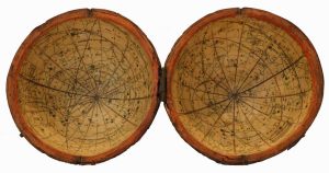 This globe was sold in different combinations: as part of an orrery and tellurian; as a pair with a celestial globe, with a map of the world in the time of Caesar as the case lining; and, as here, with the gores used for the matching celestial globe as the lining.