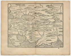 A Ptolemaic map of Asia showing from Turkey and Arabia east to the Ganges and north to the supposed kingdoms of the Hyperboreans and Anthropophagi. It was engraved by Honter and published in his 'Rudimenta Cosmographica', a cosmography for schools written in verse because Honter believed it would make the text easier to remember.