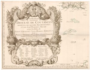 Unelli, seu Veneli. Diocese de Coutances, divisé en ses quatre Archidiaconés, et vint-deux Doiennés Ruraux avec les Isles de Iersay, Grenesey, Cers, Herms, Aurigny etc. Dédié à Monseigneur l'Illustrissime, et Reverendissime Charles-François de Loménie de Brienne, évêque de Coutances