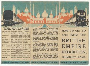 Metropolitan Railway and Connections. How to get to and from the British Empire Exhibition, Wembley Park. Under Cover All The Way.