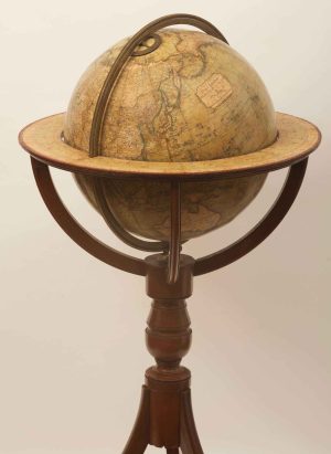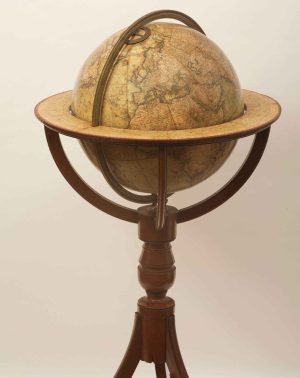 London, Newton & Son, 1842. A 12' (30cm) diameter globe, standing 90cm high, with a single pedestal stand with three legs, with four quarter circles supporting the horizon ring.