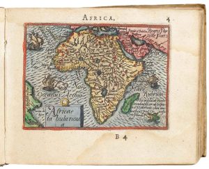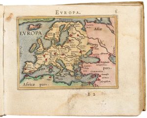 Antwerp: Arnold Coninx for Filips Galle, 1595. Latin text edition. Oblong 8vo, contemporary vellum,109 maps in fine colour, each with a page of text,