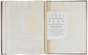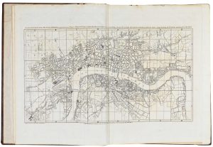 An early example of Rocque's landmark map of London, with a library spine with the gilt stamp of the Duke of Devonshire (a coronet & 'D'), and with the bookplate of the duke's town residence, Chiswick House, on the front pastedown. At the time of rebinding the rare street index was bound at the rear, in order to keep the two works together.