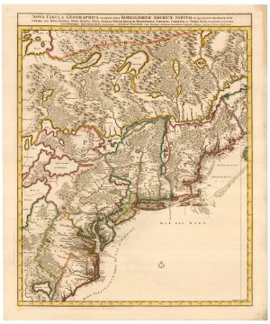 Nova Tabula Geographica complectens Borealiorem Americae Partem; in qua exacte delineatae sunt Canada sive Nova Francia, Nova Scotia, Nova Anglia, Novum Belgium, Pensylvania, Virginia, Carolina et Terra Nova...
