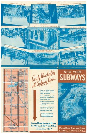New York City: Union Dime Savings Bank, 1940. Colour-printed map, printed on both sides. 445 x 290mm.
