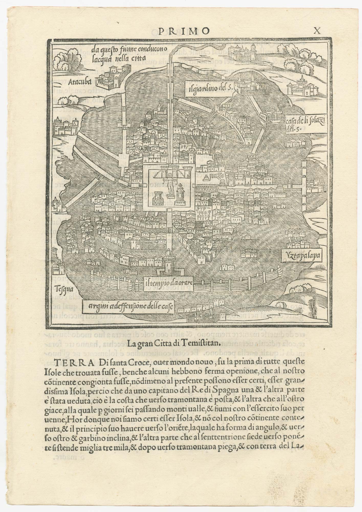 A woodcut plan of Tenochtitlan before the Spanish conquest of Mexico City